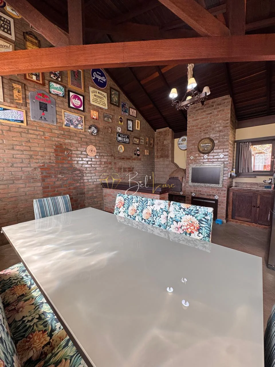 • Quiosque gourmet completo, com churrasqueira, fogão a lenha e forno de pizza