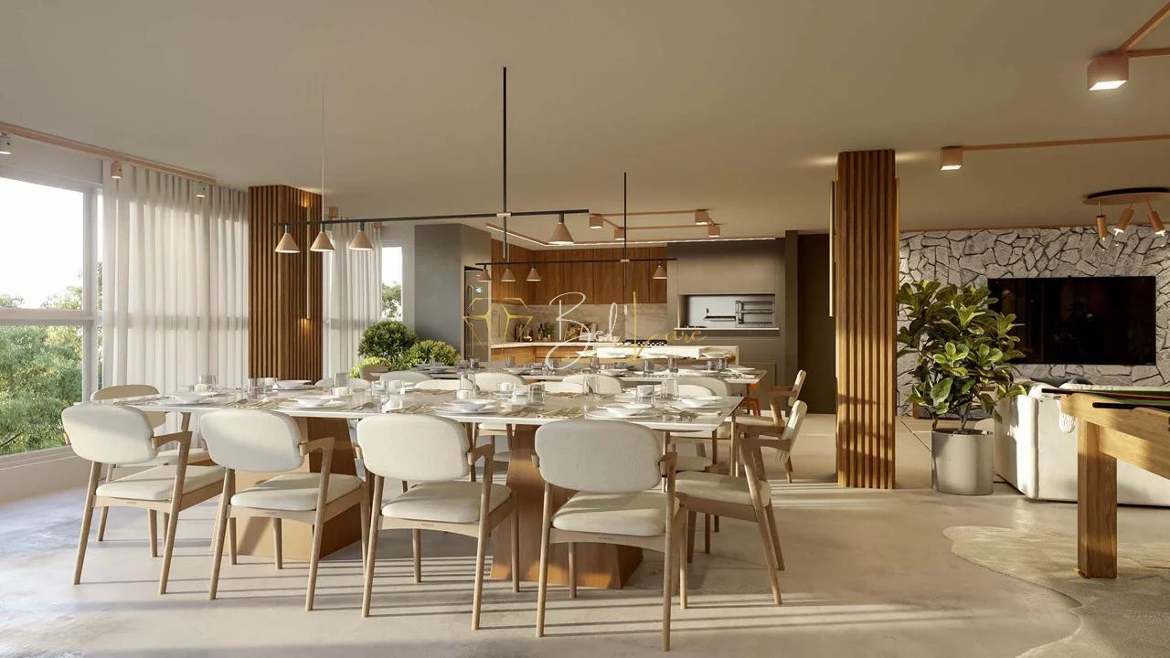 Os apartamentos possuem entre 118 e 133m² privativos, com três dormitórios, sendo uma suíte. A planta foi projetada para oferecer integração entre os ambientes, com cozinha conectada à área social e sacada gourmet com churrasqueira. As unidades contam ainda com lavabo, duas vagas de garagem e a possibilidade de personalização da planta conforme as necessidades do morador.
