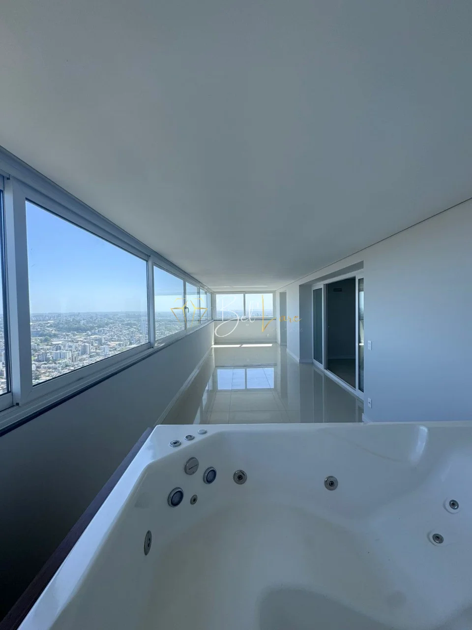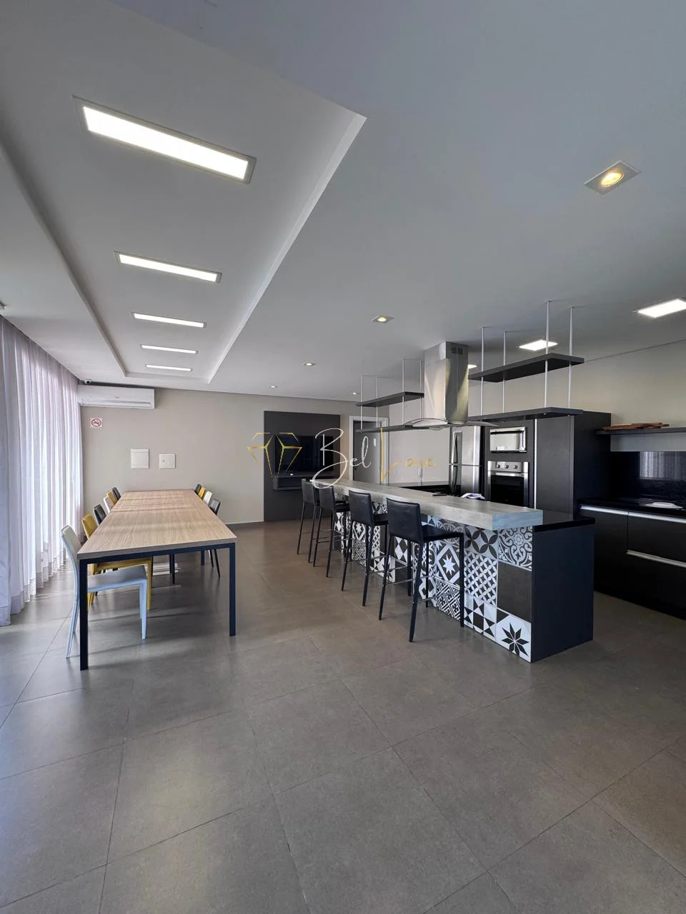 O imóvel é composto por três suítes, sendo uma máster com closet e espera para hidromassagem. Possui espera para split, esquadrias em PVC com vidros duplos, living integrado para dois ambientes, cozinha com churrasqueira e uma ampla sacada fechada com jacuzzi. Conta também com área de serviço com sacada própria, lavabo, piso porcelanato e laminado, espera para cabeamento estruturado, gás, medidores individuais e água quente.