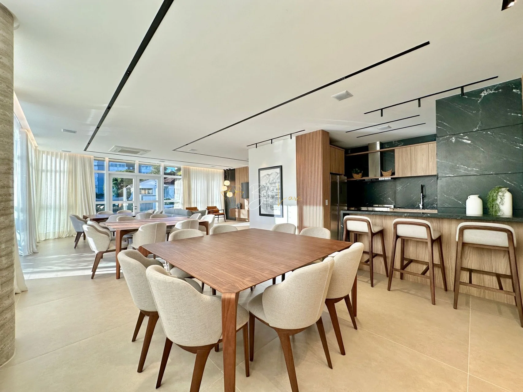 Com 155 m² de área privativa e 204 m² de área total, o imóvel conta com 3 dormitórios, sendo 3 suítes, além de lavabo e 3 vagas de garagem. A posição solar norte garante excelente incidência de luz durante todo o dia.