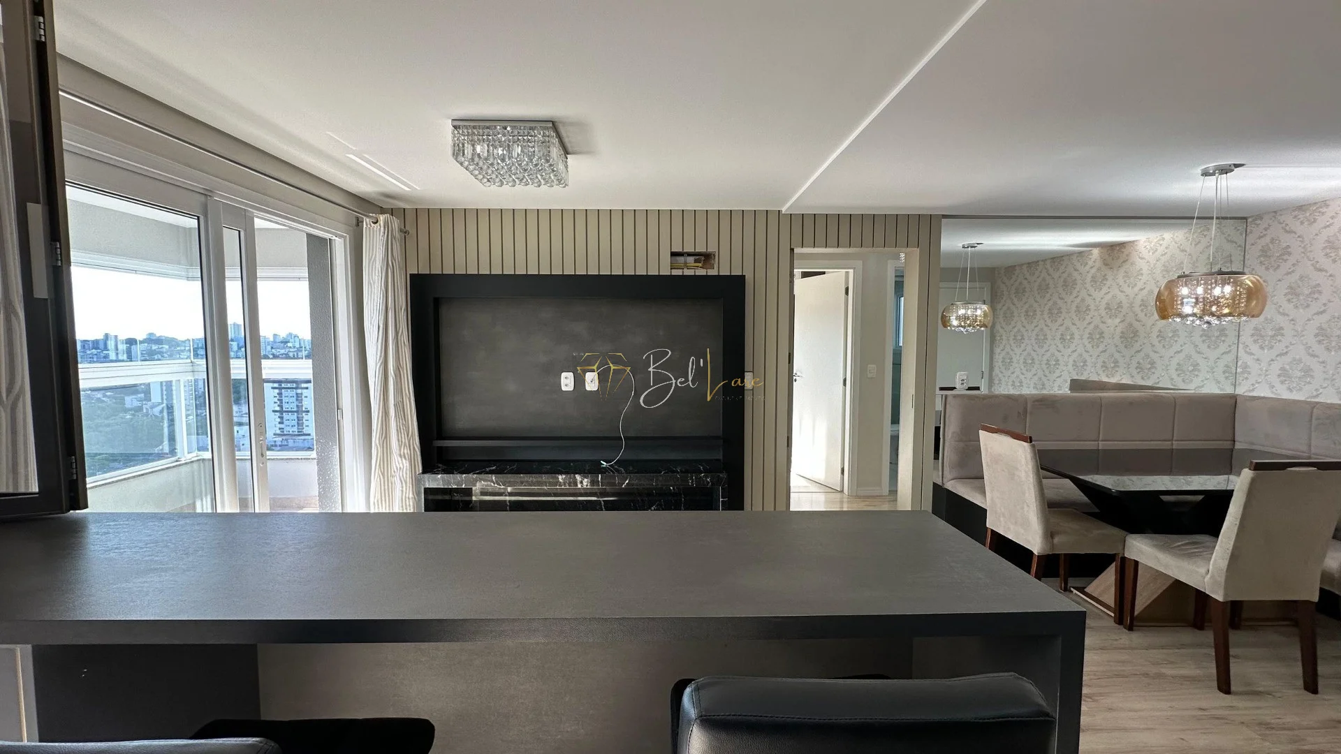 Apartamento mobiliado no bairro Panazzolo, com 3 dormitórios, sendo uma suíte. A cozinha com churrasqueira integra-se ao living de dois ambientes, composto por estar e jantar, além de uma ampla sacada com uma vista panorâmica espetacular. Conta também com área de serviço e banheiro social.