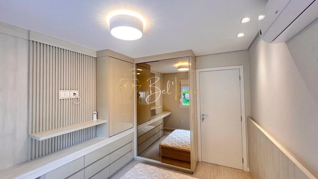 Possui água quente. Há split instalado na suíte, em um dormitório e no living, com espera no terceiro dormitório. O condomínio disponibiliza depósito individual para itens pessoais e conta com gás central, elevador, hall decorado, salão de festas mobiliado e equipado, espaço beauty, espaço fitness e espaço kids. Quatro vagas de garagem.