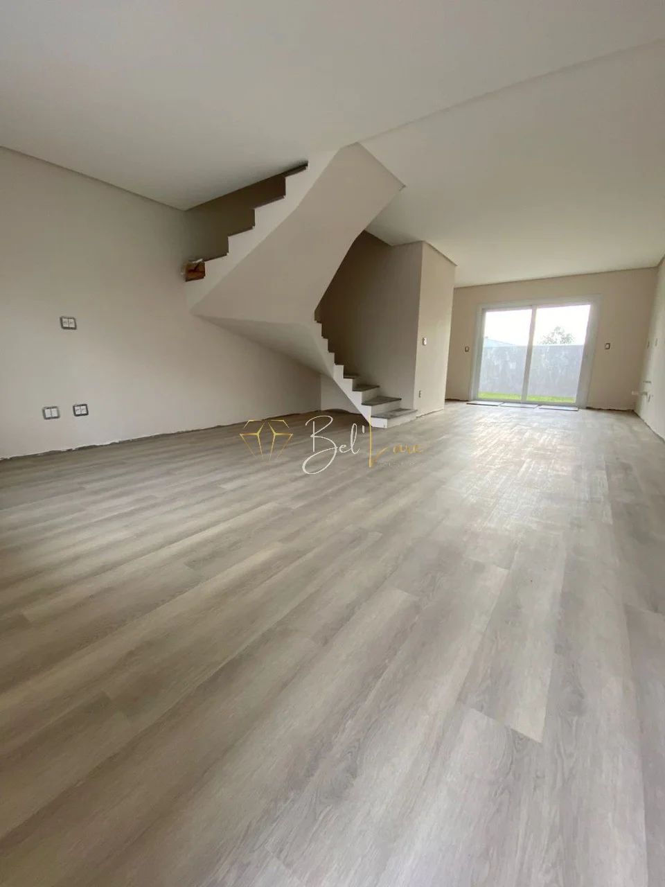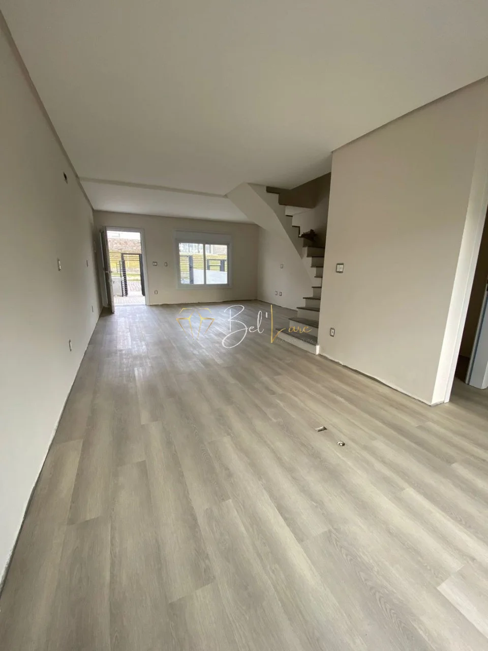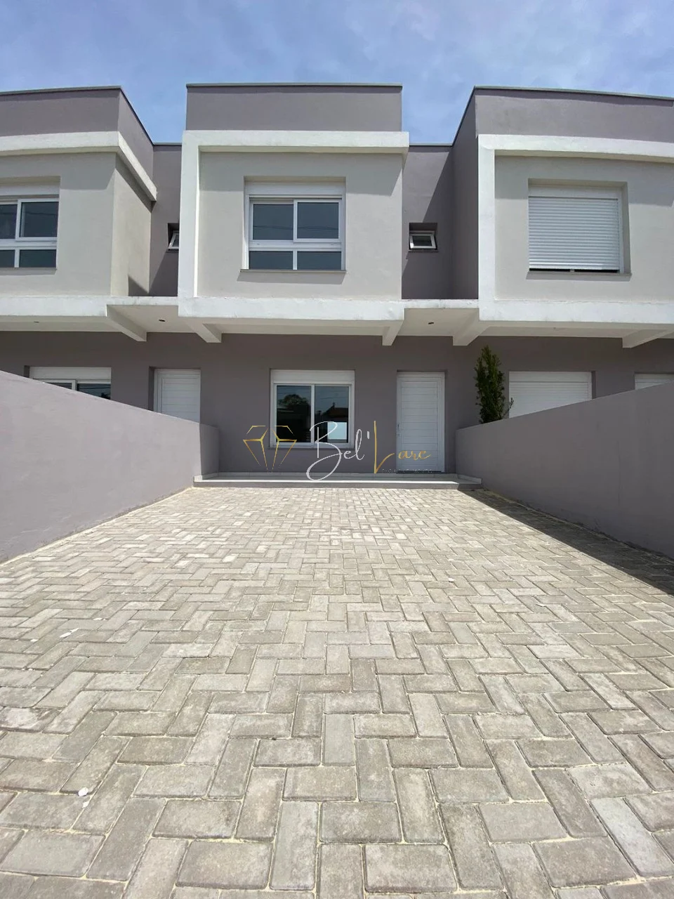 Sobrado Duplex, com 03 dormitórios, sendo o casal com suíte, banheiro social, lavabo, cozinha, sala 02 ambientes, varanda, área de serviço com churrasqueira, pátio individual, espera para água quente, espera para split em todas as peças, gás central, acabamento interno em massa corrida, rebaixe em gesso, paredes duplas com isolamento térmico e acústico, aberturas em PVC com vidro duplo e persianas automatizadas, piso vinílico no térreo, laminado no segundo piso e porcelanato nos banheiros e varandas, estacionamento para 02 carros.