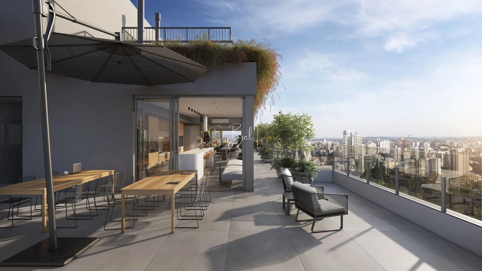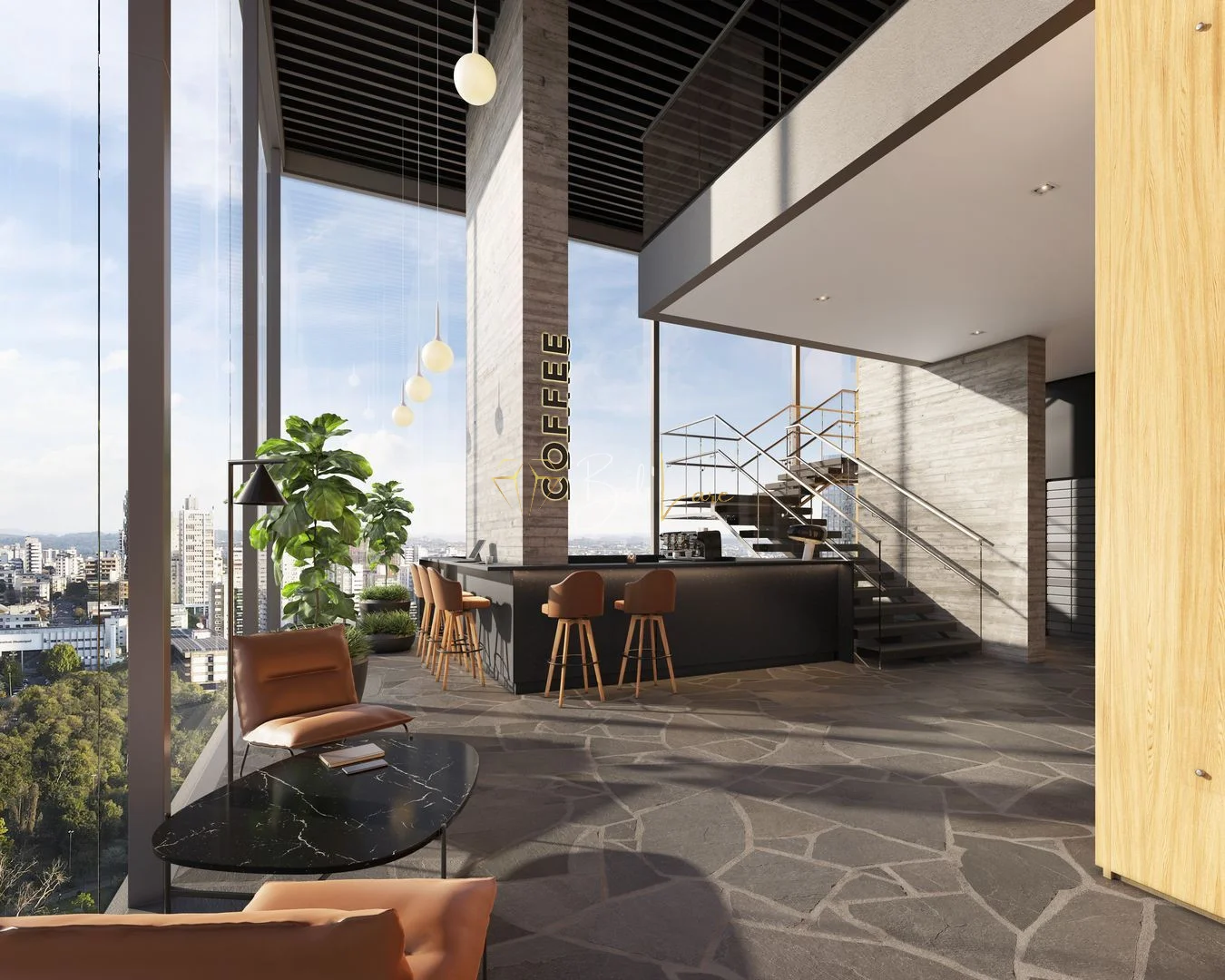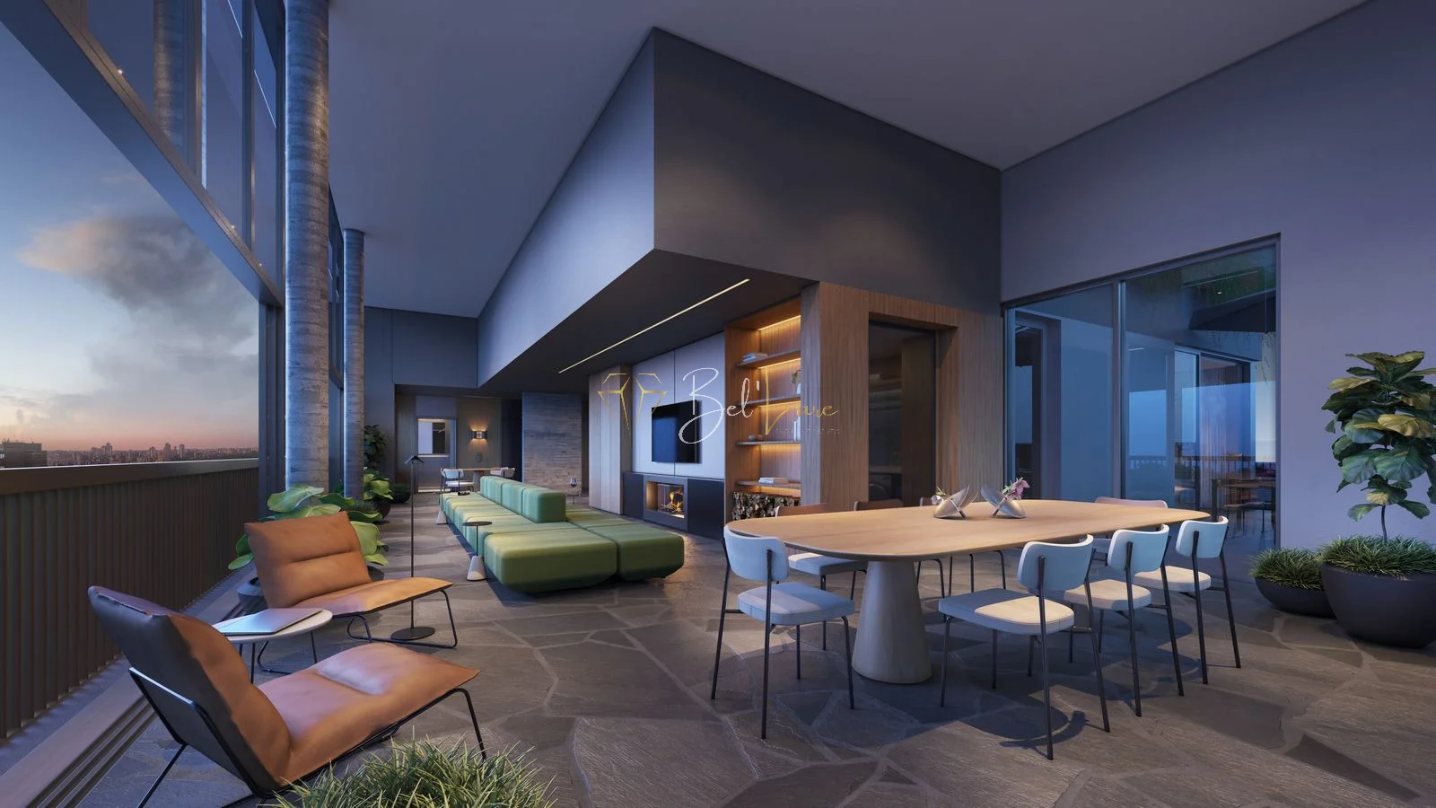 Arquibancada com vista para o Parque Getúlio Vargas e o pôr do sol. Lounges com lareira, home office e terraços. Mirante de vidro e vista panorâmica. Espaços gourmet integráveis e confortáveis ambientes de convívio. Lavanderia equipada. Terraços externos.