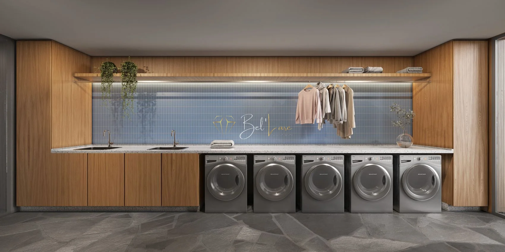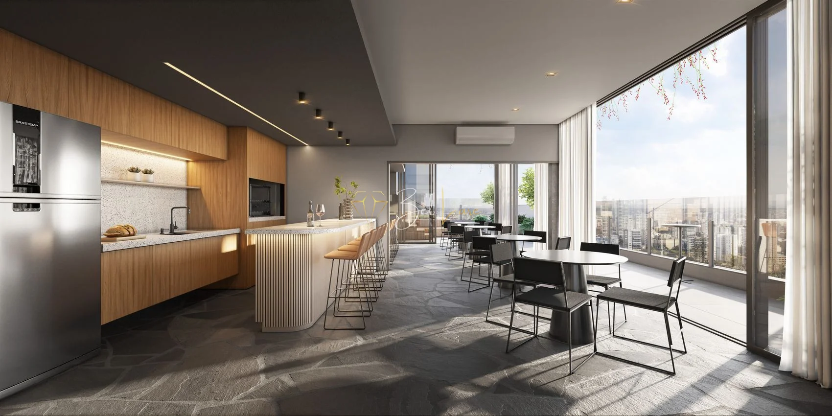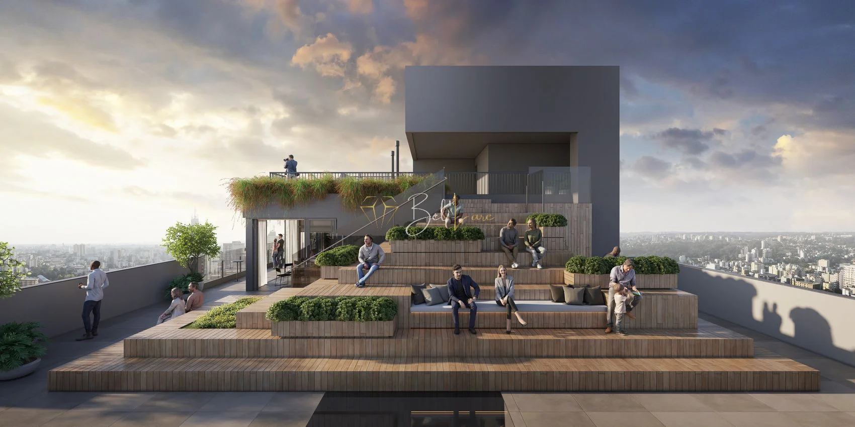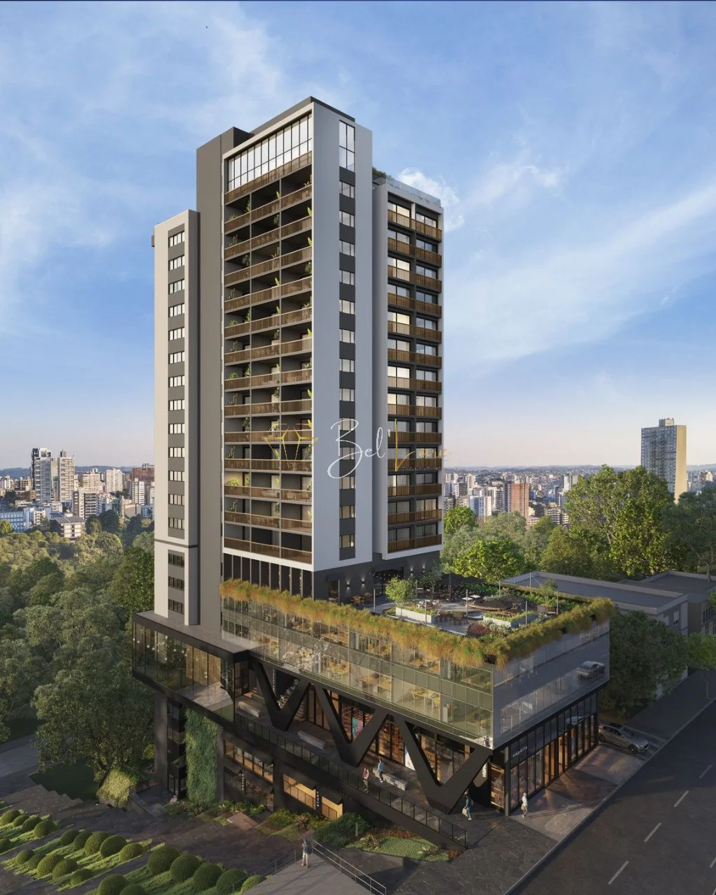 Arquibancada com vista para o Parque Getúlio Vargas e o pôr do sol. Lounges com lareira, home office e terraços. Mirante de vidro e vista panorâmica. Espaços gourmet integráveis e confortáveis ambientes de convívio. Lavanderia equipada. Terraços externos.