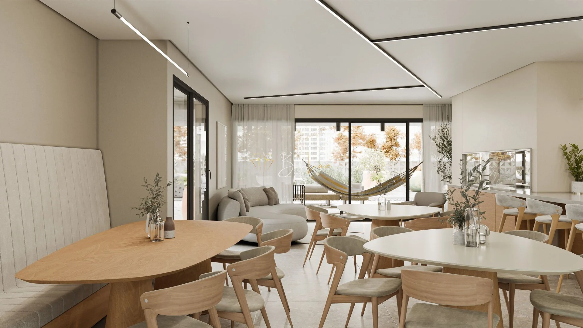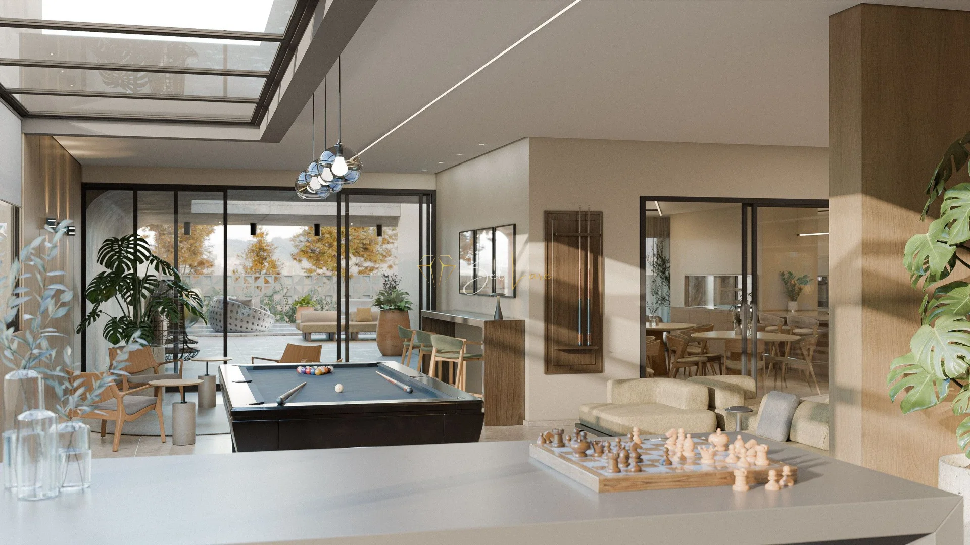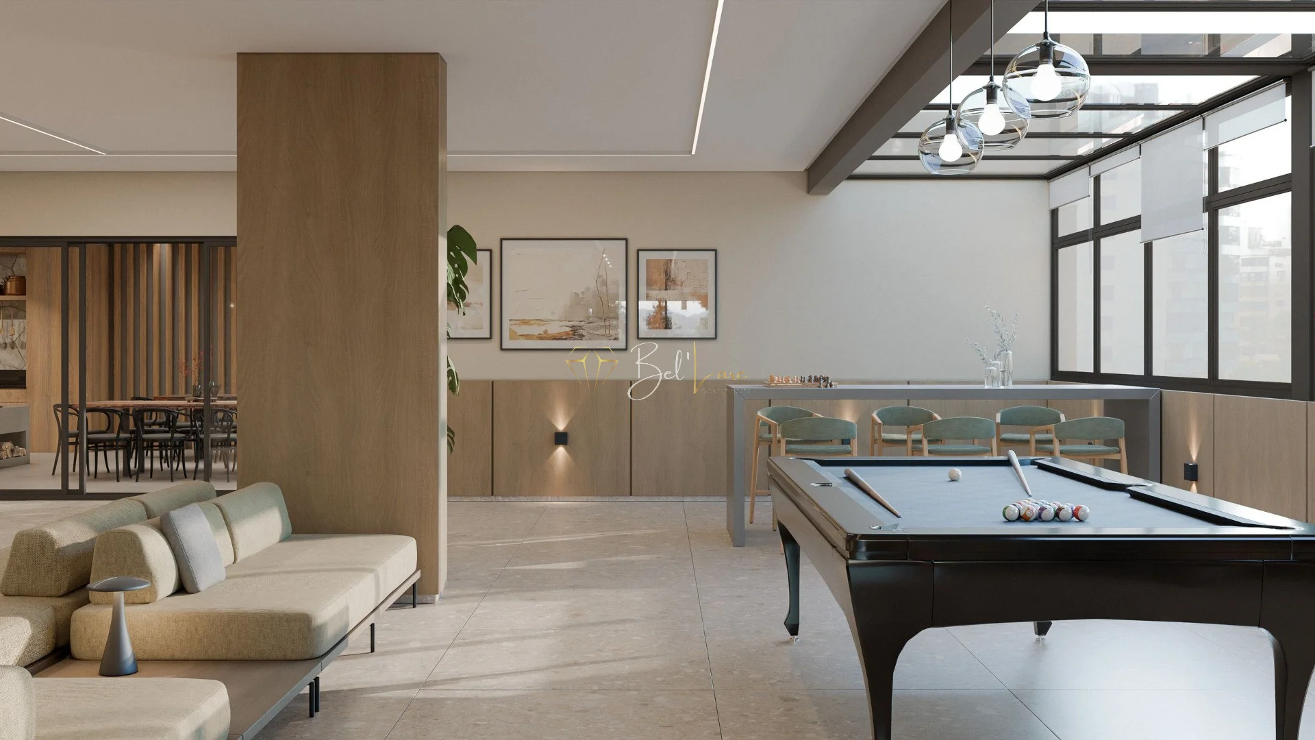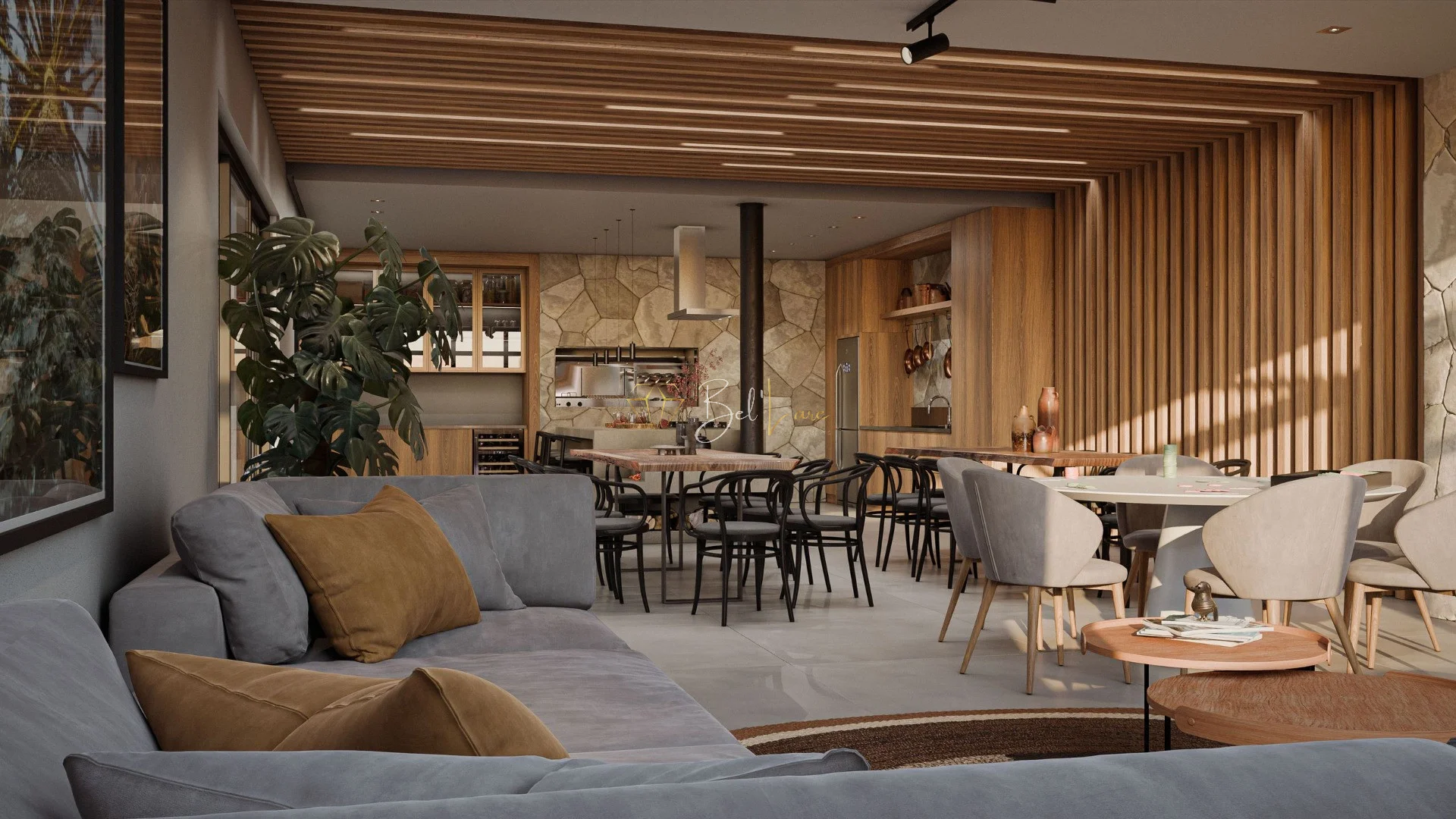 Lazer na medida certa: salões, praça dos moradores e rooftop integrados ao cotidiano, como uma extensão dos apartamentos.