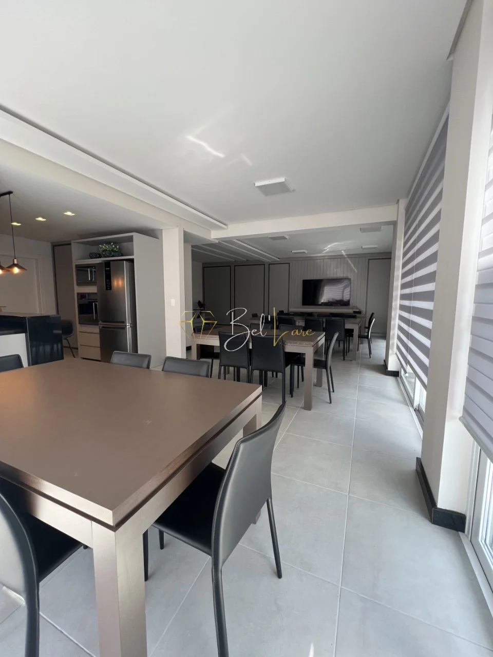 A área íntima é isolada e composta por 3 suítes, sendo 1 suíte master com hidromassagem, sacada e closet, com possibilidade de adaptação para escritório. O imóvel conta ainda com cozinha, amplo living para três ambientes, com espera para lareira e sacada com vista panorâmica, além de lavabo e área de serviço com churrasqueira e sacada.