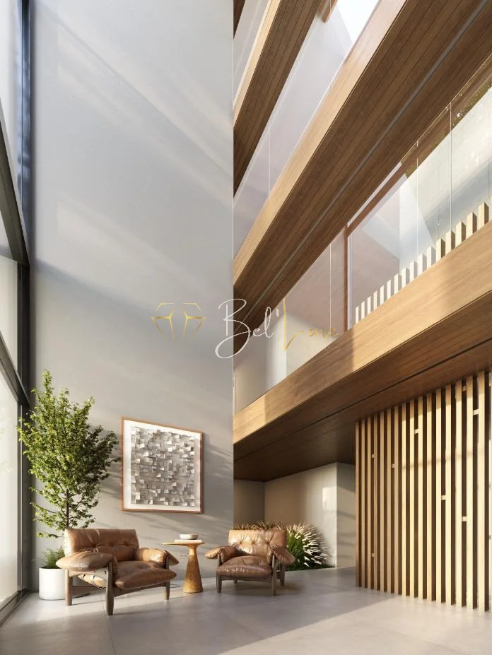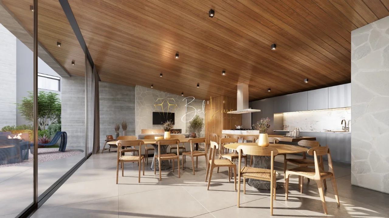 O projeto apresenta acabamentos de alto padrão, com destaque para as esquadrias de PVC preto com vidros duplos, que garantem conforto térmico e acústico. As áreas comuns foram pensadas para oferecer bem-estar e funcionalidade, sendo entregues decoradas e equipadas, em meio a um ambiente naturalmente integrado à paisagem.