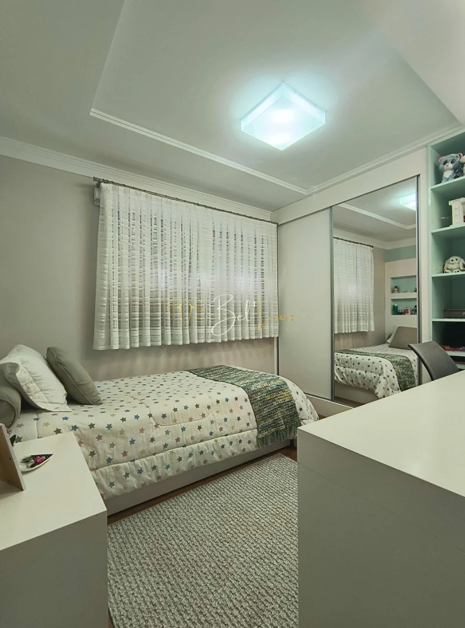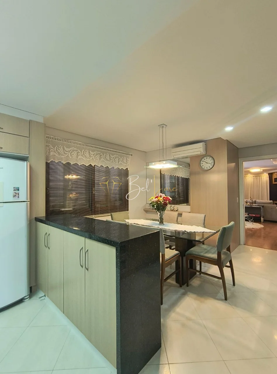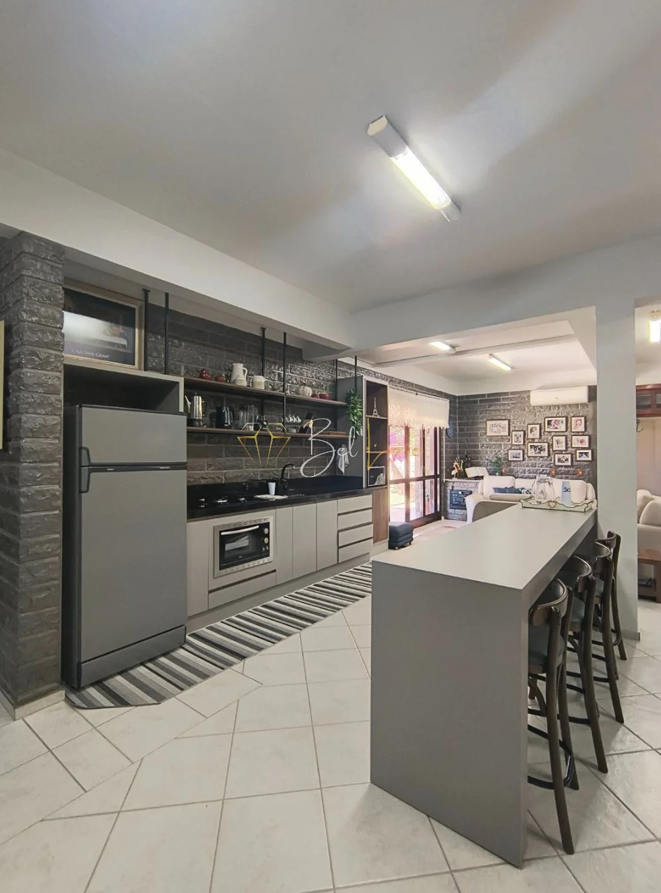 Ambientes amplos e integrados, com sala de estar e jantar com lareira e acesso à sacada, copa-cozinha funcional e banheiro social contemporâneo. No pavimento inferior, espaço gourmet completo, churrasqueira com bifeteira, bar integrado, academia privativa e garagem coberta para 2 veículos.